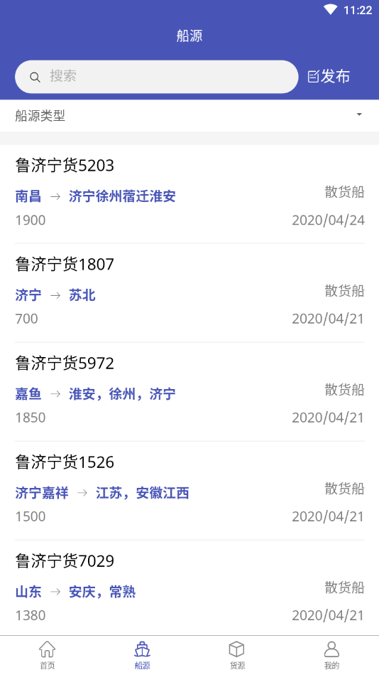 货主可以在平台发布船源信息:出发港,到达港,货物重量,出发时间,联系方式等信息:支持批量发布和智能报价功能,简化货运流程