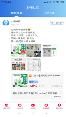 谷泉社区:打造沉浸式社交购物体验,不仅汇聚全球优质商品,更通过智能算法精准匹配用户偏好。社区内设有达人测评、使用心得等互动板块,让购物决策更轻松。用户还能参与新品试用活动,与品牌方直接互动。