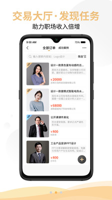 专家在线·助力企业降本增效!平台汇聚各领域专业人才,为企业提供高质量外包服务,显著提升运营效率。动态广场·打造个人职业影响!用户可以通过分享专业内容建立个人品牌,扩大行业影响力。交易大厅·助力人才收入倍增!完善的交易保障机制让技能变现更安全可靠,帮助用户实现收入快速增长。此外,平台还提供智能匹配、信用评价等特色功能,确保每笔交易都能顺利完成。