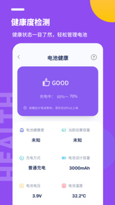 *电池健康度:采用专业级检测算法,精确计算电池容量衰减程度。可视化显示循环次数、电压波动等核心参数,让用户全面掌握电池真实状态。