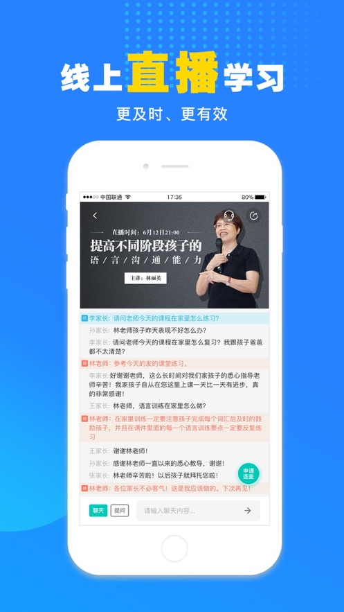 实时互动学习:专家直播课程支持在线提问互动,及时解决家长遇到的实际问题,获得针对性指导。