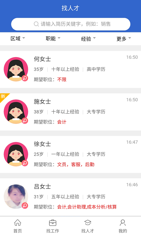3. 智能搜索:支持按行业、薪资、经验等条件筛选职位。
