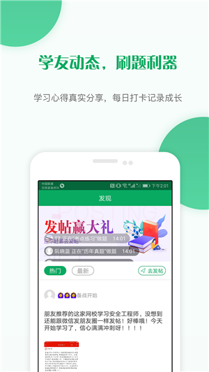 自动汇总错题,汇总其它考生错题,形成专属错题本智能分析错误规律。智能评估阅卷,快速查看成绩,详细解析帮助理解每个知识点。收藏薄弱试题,随时排查重做,支持自定义标签分类管理。抽题组卷,模拟考场,积累实战经验,提前适应考试节奏和压力。掌上,我的笔记,大家的笔记,支持图文混合记录并云端同步。试题讨论精华,考生精选试题讨论,助力试题解惑,社区互动让学习不再孤单。