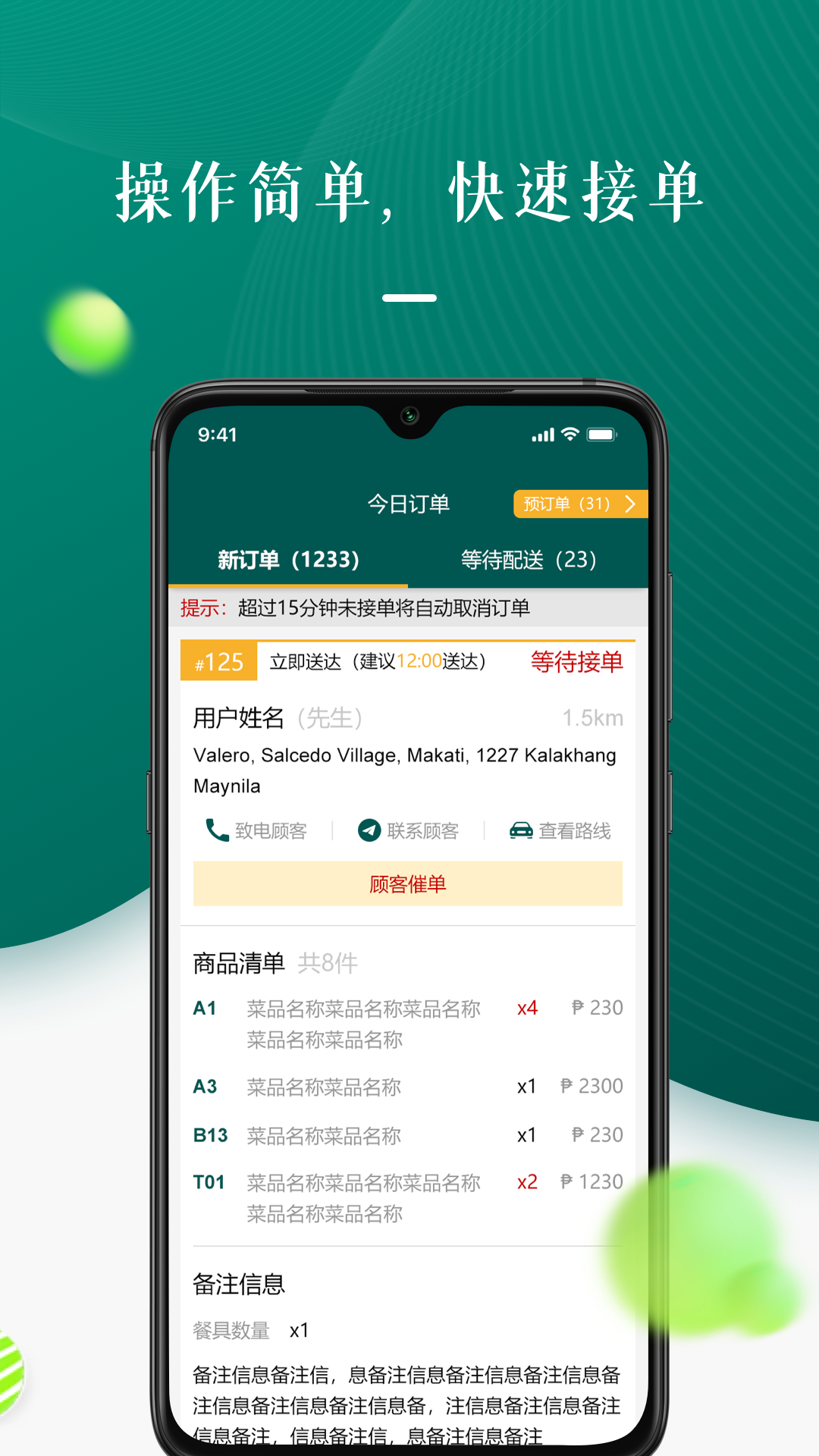 优化体验,增强稳定性。本次更新重点改进了订单提醒功能,新增语音播报和震动提示双重提醒机制,确保商家不错过任何订单。同时修复了部分机型上的闪退问题,系统响应速度提升20%,为商家提供更流畅的使用体验。