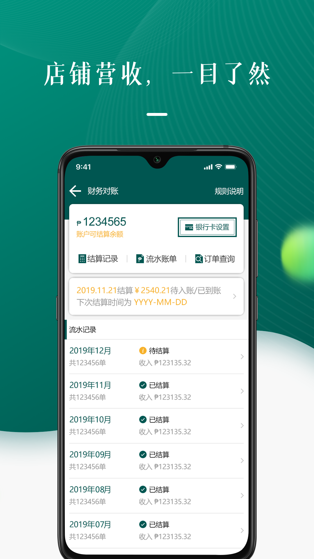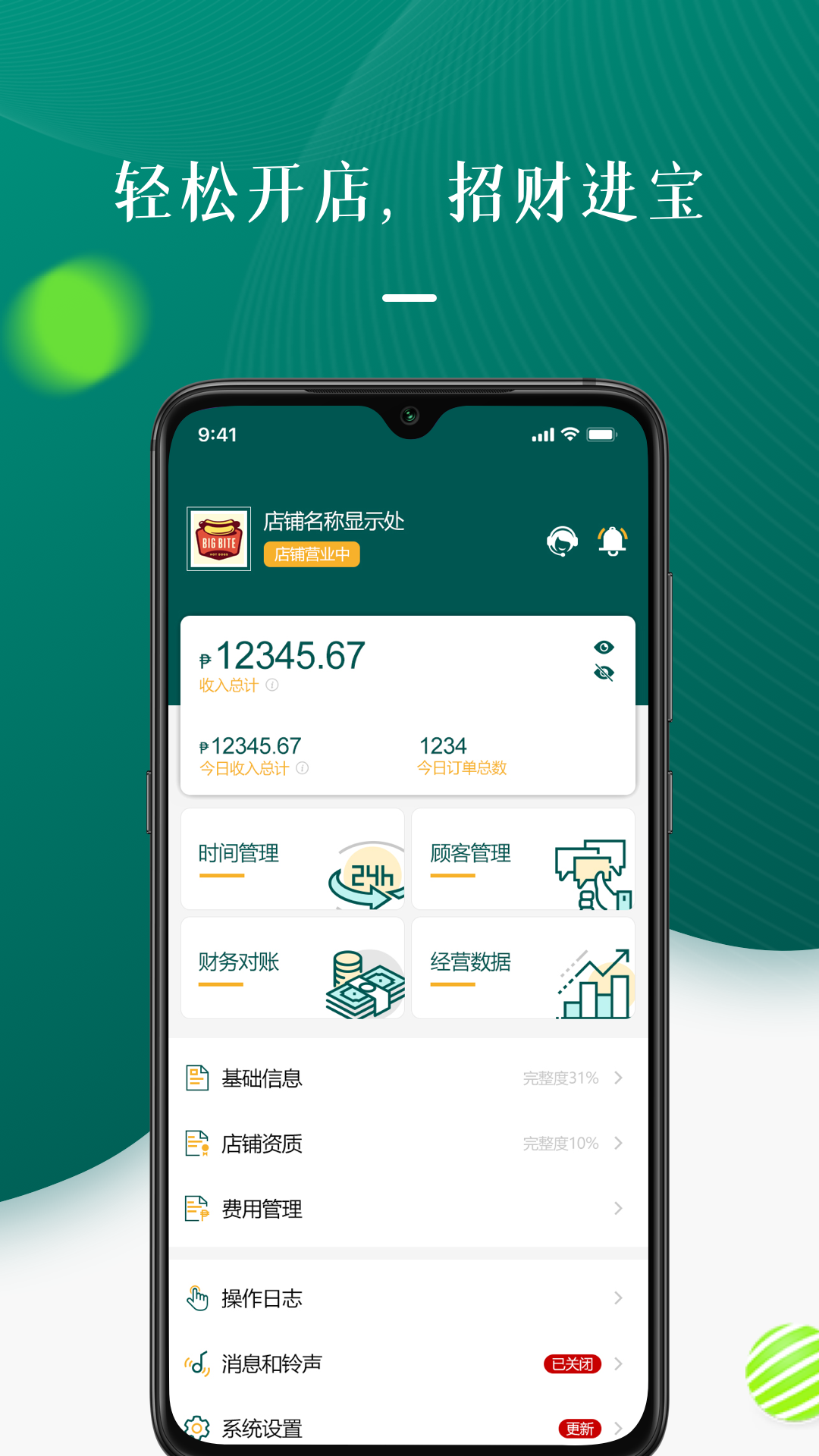 轻松开店,招财进宝 操作简单,快速接单 店铺营收,一目了然 辅助运营,轻松盈利 系统采用可视化数据看板设计,关键经营指标以图表形式直观呈现。独有的智能推荐功能可根据销售趋势给出营销建议,比如热门商品置顶、优惠套餐设置等。商家还能通过客户评价分析模块,及时了解顾客反馈,持续优化服务质量。