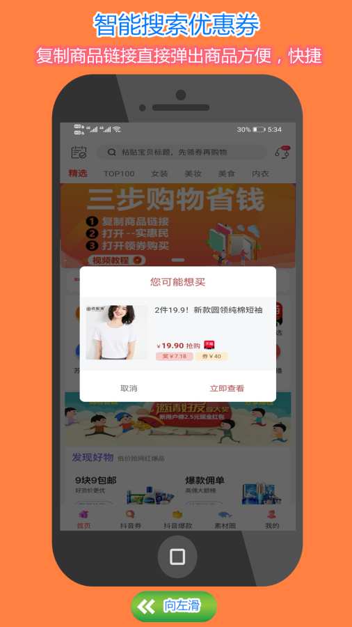 【智能搜券】基于大数据分析的智能推荐系统,能自动发现网购平台的大额隐藏优惠券,操作简单快捷,省去比价烦恼。