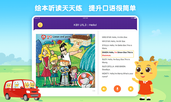 内置丰富的英语绘本资源,支持跟读、听读等多种模式,全方位训练听力理解能力。智能语音评测系统实时纠正发音,帮助孩子练就地道口语。