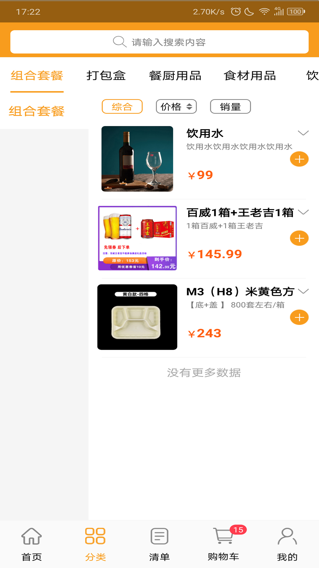 平台商品分类科学完善,包括组合套餐、打包盒、餐厨用品、食材用品、饮料、酒类等多个大类。每个大类下又细分为多个子类目,如餐厨用品包含餐具、厨具、清洁用品等;食材用品包含蔬菜、肉类、海鲜等生鲜食材。这种精细化的分类体系让您能够快速找到所需商品,大大提升采购效率。平台还定期更新商品品类,紧跟餐饮行业发展趋势,确保为您提供最新最全的采购选择。