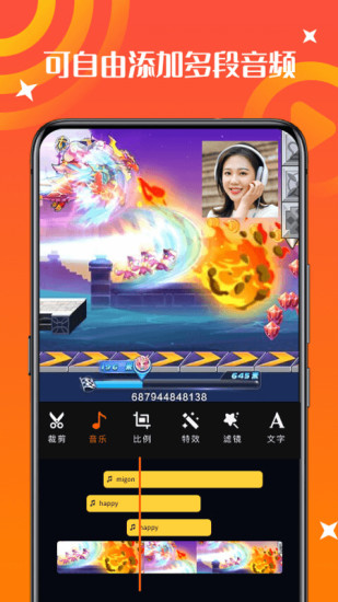 录屏录音大师的操作非常简单,只需呼出悬浮球并点击录制按钮即可开始录制,录制时长不受限制。无论是分享游戏攻略、解说视频还是录制电影片段,这款软件都能满足您的需求。它将录屏、录音、剪辑等功能集于一身,为您提供一站式的录屏解决方案。软件占用内存极小,即使在多任务运行的情况下也不会影响手机性能。录制完成后,您还可以对视频进行剪辑,添加文字、裁剪画面、应用特效和滤镜等,让您的作品更加专业。