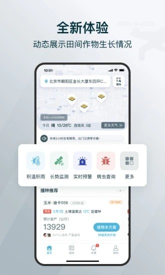 爱科农研发团队构建了业内领先的气候、土壤、作物生长等专业模型体系。这些模型能够实时处理气象站传回的最新数据,动态调整管理建议。无论是灌溉时机、施肥配比,还是病虫害预警,系统都能给出精确到天的操作指导,帮助种植者实现精细化管理。