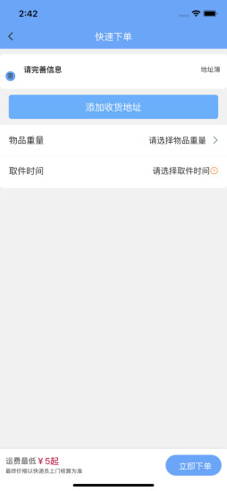 极速下单体验:通过简洁明了的操作界面,用户可快速完成下单流程,自由设定取件时间,让配送服务完全配合您的生活节奏。