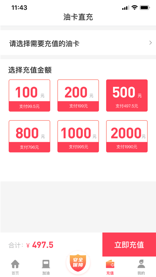 充值:直充油卡享受1%额外优惠,充值即时到账,加油无需等待;