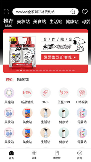 商品种类丰富价格优势明显,精选上万种人气商品,涵盖日韩中最优质的美妆、护肤、零食、健康食品等品类,实现真正意义上的一站式购物。依托强大的日韩企业直供渠道,提供直采优势价格,更有app内7日价格保障,确保U品U价最优选。