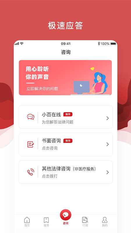 【法律咨询】突破传统法律服务的时间空间限制,用户可随时发起咨询请求,系统智能匹配最适合的律师资源,实现即时响应。