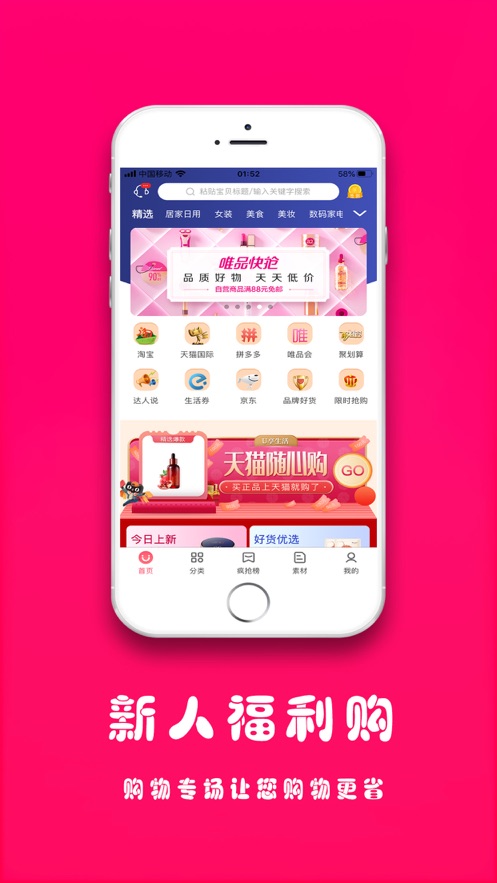 咚咚抢:每天整点限时抢购活动,超值商品和优惠券限量发放,抢到即是赚到。快来参与,享受超低价格的购物乐趣!