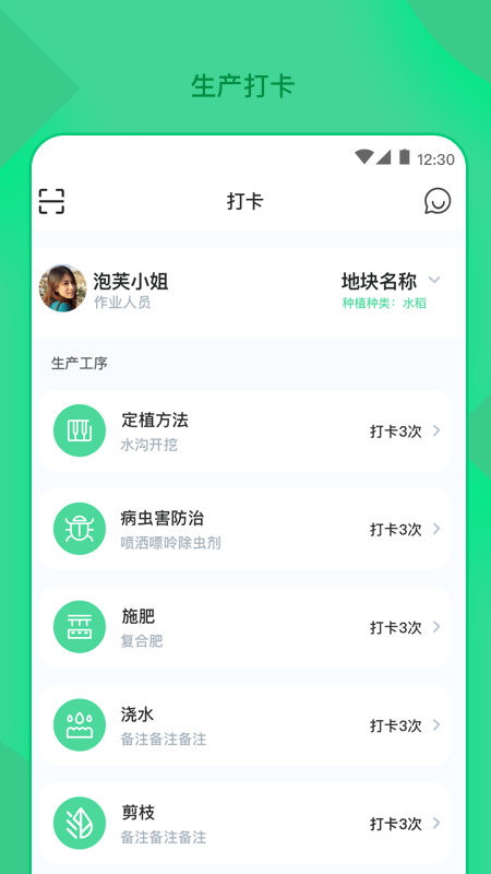 生产管理模块:提供从种植计划到收获管理的全流程数字化解决方案,支持作物生长周期记录、农事操作提醒等功能。
