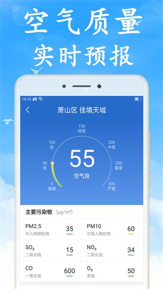 整合环保部门实时数据,显示PM2.5、二氧化硫等8项污染指标。提供专业的健康建议,特别适合敏感人群。