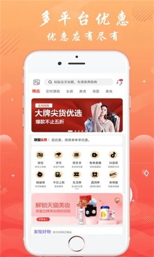 类目齐全:涵盖服饰、数码、家居等200+商品类目,每日更新上万条优惠信息。特别设有新品专区和季节限定板块,紧跟潮流趋势,满足不同用户的个性化购物需求。