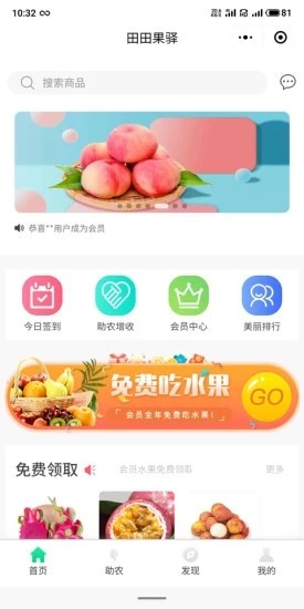 田田果驿app提供海量福利活动,惊喜多多!每周推出新用户专享礼包、限时秒杀、满减优惠等活动,更有会员积分兑换、生日专属福利等长期优惠。平台还会根据季节变化推出应季水果特惠专场。
