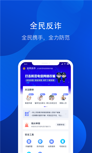 全民反诈App是一款专注于防范电信网络诈骗的专业服务平台,致力于为用户提供全方位的反诈知识普及与安全防护。通过丰富的宣传内容、实时预警功能和便捷的举报渠道,帮助用户有效识别和防范各类诈骗手段,守护个人财产安全。无论是常见的电话诈骗、网络钓鱼,还是新型的金融骗局,全民反诈都能提供最新资讯和实用技巧,让用户随时掌握防骗技能,远离诈骗陷阱。