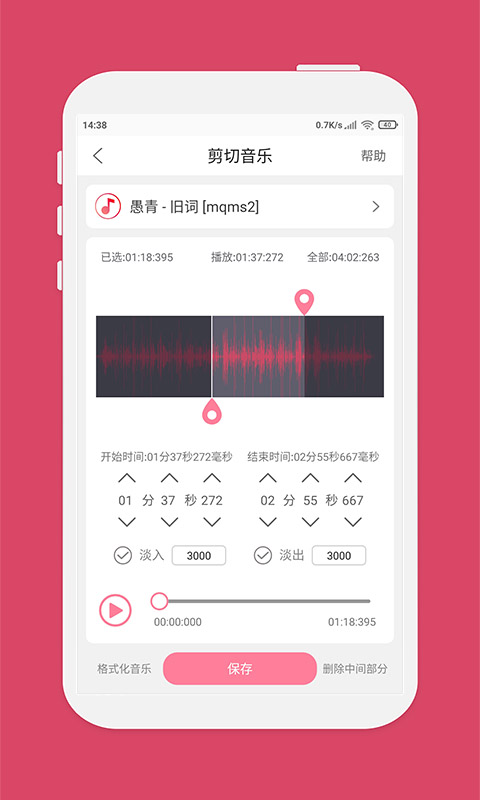 简单的使用方式,让你轻松对音频进行剪辑!直观的操作流程和贴心的功能引导,即使是初学者也能快速上手,无需专业音频知识就能完成高质量的音乐编辑工作。