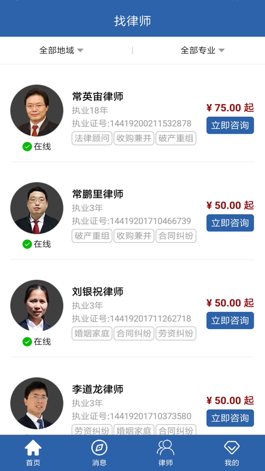 常盛法宝APP是一款专业高效的法律咨询服务平台,为用户提供全天候的在线律师咨询服务。无论您遇到婚姻纠纷、合同争议还是劳动纠纷,只需轻点手机,即可与资深律师实时沟通,获取专业法律建议。平台汇聚各领域法律专家,确保解答权威可靠。通过智能匹配系统,快速为您对接最适合的律师,大幅提升咨询效率。APP界面简洁明了,操作便捷,让复杂的法律问题变得简单易懂,是您身边不可或缺的法律助手。