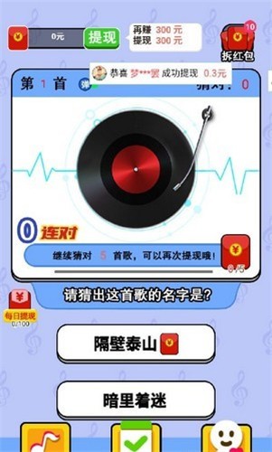 可以提现,游戏内玩家可以体验到不同节奏挑战内容,出色的完成每一个挑战任务获得更多红包。所有红包奖励均支持微信、支付宝等多种提现方式,最低0.3元起提,24小时内快速到账。游戏采用透明提现机制,玩家可随时查看提现进度。通过不断提升节奏感与反应速度,玩家能获得更多高额红包奖励。系统还会定期推出双倍红包活动,让玩家在享受音乐的同时获得更多收益。