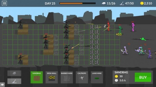 游戏采用独特的塔防+动作玩法,玩家需要合理部署不同职业的火柴人守卫阵地。丰富的兵种搭配和站位选择让每次防守都成为一次全新的策略考验。