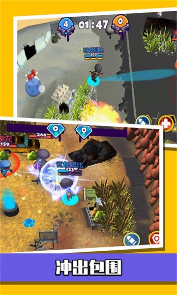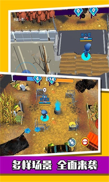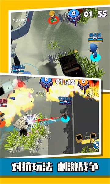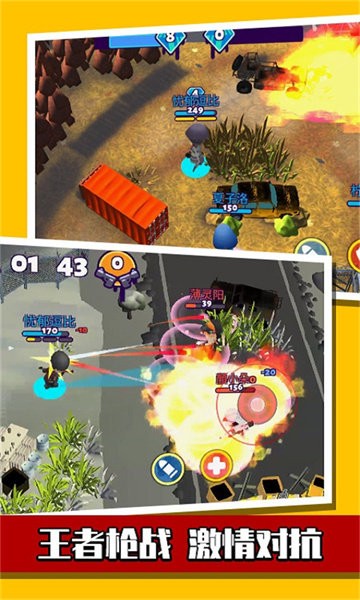 游戏采用精美的卡通渲染技术,打造出色彩鲜明、风格独特的视觉体验。丰富的武器系统让玩家可以根据战斗需求选择不同特性的枪械,从精准的狙击步枪到火力强大的机枪,每种武器都拥有独特的手感和使用技巧。游戏还设有完善的成就系统和排行榜,激励玩家不断挑战自我,提升战斗水平。