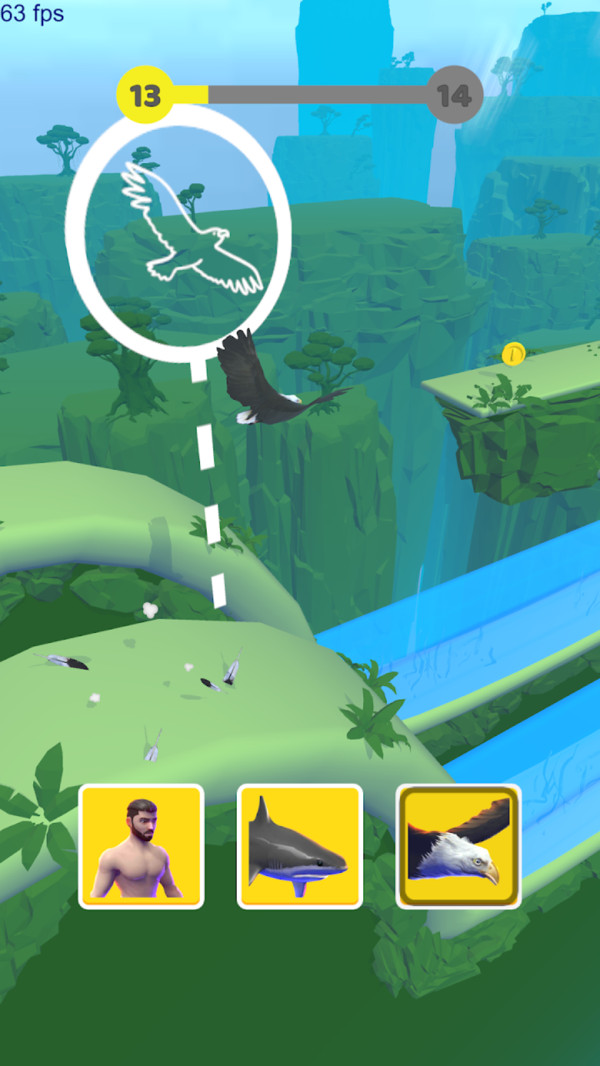 百变冲关是一款极具创意和趣味性的跑酷类手机游戏,它将传统跑酷玩法与变形机制完美结合,为玩家带来前所未有的游戏体验。在游戏中,玩家可以自由切换多种形态,包括老鹰、鲨鱼、人类等不同生物,每种形态都拥有独特的移动方式和特殊能力。比如变身为老鹰可以在空中翱翔,而鲨鱼形态则更适合在水中快速穿梭。这种创新的玩法设计不仅考验玩家的反应速度,更需要灵活运用不同生物的特性来应对复杂多变的关卡挑战。