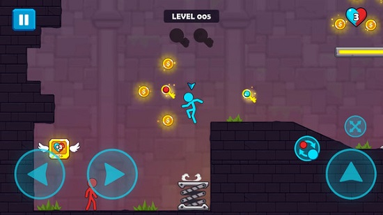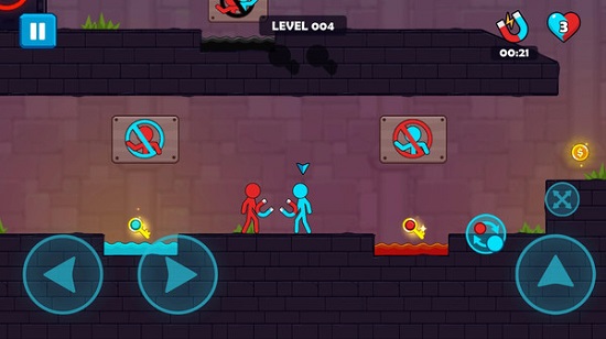 冰火火柴人是一款令人欲罢不能的益智冒险游戏,玩家将操控两个拥有不同属性的火柴人角色——冰人和火人。你们的目标是收集散落在古老圣殿各处的魔法宝石,并最终找到通往自由的出口。在探索过程中,会遇到各种属性相克的障碍,比如火人怕水、冰人惧火,需要玩家巧妙运用角色特性来化解危机。游戏中的每个谜题都经过精心设计,既考验操作技巧又需要开动脑筋。随着关卡推进,场景会越来越复杂,但成功通关后的成就感也会成倍增长!