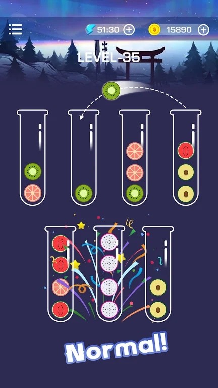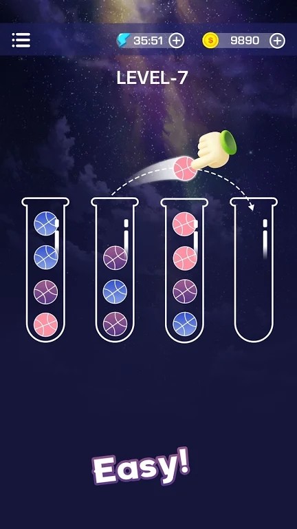 游戏拥有海量精心设计的关卡,每个关卡都独具特色,需要玩家运用不同的策略来应对。随着游戏进程,玩家会遇到各种颜色组合的小球,如何将它们准确无误地分类到同一试管中,需要玩家仔细思考和规划。游戏鼓励玩家不断尝试新的操作方式,在失败中总结经验,最终找到最优解。这种循序渐进的设计让玩家在挑战中不断提升自己的逻辑思维能力。