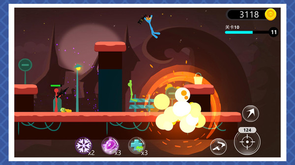 多种不同的火柴人战斗体验,从近身格斗到远程射击应有尽有,你能够控制角色打败对手,消灭所有敌人,闯过关卡。游戏在保持简单操作的同时,又提供了足够的深度让玩家钻研,是一款适合各类玩家的优秀动作游戏。无论是画面表现、操作手感还是游戏内容,都达到了同类作品中的顶尖水准。