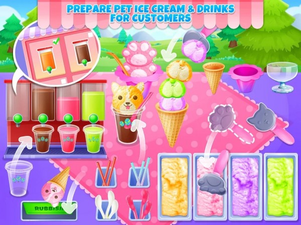 《宠物冰淇淋店》的最大亮点在于其细致入微的制作系统。从选择原料到装饰成品,每一步都需要你的精心操作。游戏会提供详细的教程,帮助你快速掌握制作技巧,成为一名真正的冰淇淋大师。随着技能的提高,你可以制作出更加复杂精美的冰淇淋,满足不同顾客的需求。