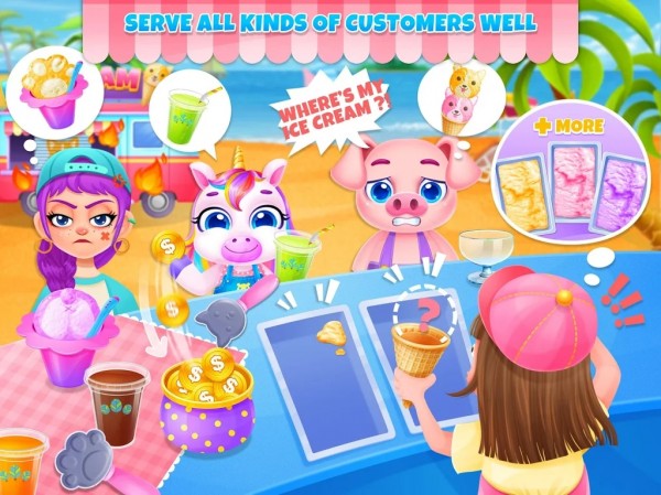 作为一款模拟经营游戏,《宠物冰淇淋店》提供了深度的经营玩法。你需要合理管理店铺资源,平衡收支,适时升级设备,扩大经营规模。随着店铺等级的提升,你将解锁更多高级功能,如外卖服务、特殊活动等,让你的冰淇淋事业蒸蒸日上。