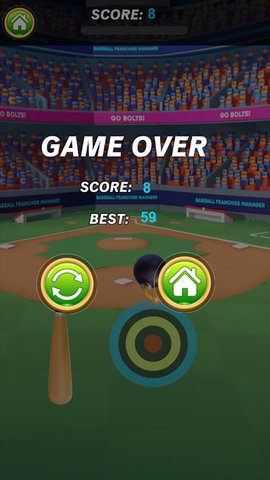 精准控制。游戏采用直观的触控操作,玩家只需轻点屏幕就能精准控制棒球棒的挥动轨迹,击中高速飞行的棒球。这种简单而精确的操作方式让游戏既容易上手又充满挑战性。