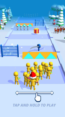 游戏中的对手非常强大,无论目标多么困难,玩家都必须坚持更长时间才能取得胜利。游戏特别注重战术合作,只要能够赢得比赛,您可以尝试任何可能的策略来获得最终胜利。玩家需要成群结队地行动,和人群一起奔跑,与对手展开激烈竞争。游戏开始时您需要独自奔跑,在途中不断聚集人群,扩大自己的队伍规模。带领您的团队穿过各种移动、旋转和膨胀的障碍物时,需要精确计算奔跑的步数,并尽可能多地保存人群数量。