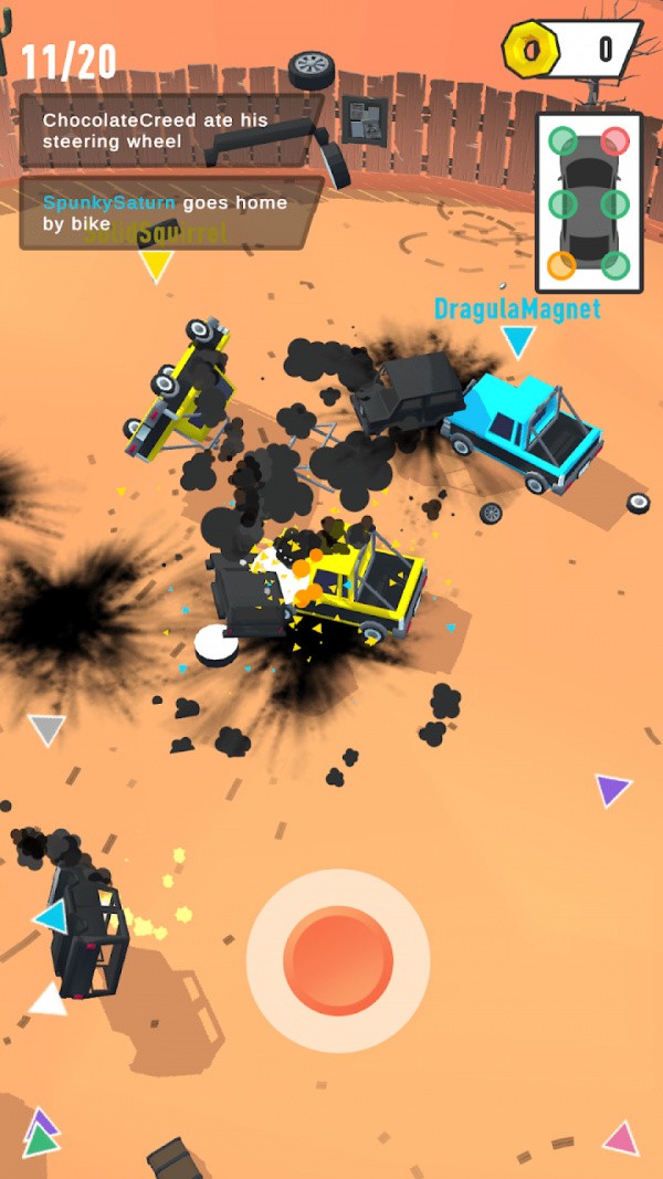 游戏的核心玩法在于破坏与生存的完美平衡。玩家需要通过精准的撞击来削弱对手的赛车,当对方车辆的损坏值达到100%时就会被淘汰出局。游戏特别设计了华丽的漂移系统,让你在闪转腾挪间展现高超车技。独特的成就系统会记录你的每一次精彩表现,从完美的漂移过弯到致命一击,都能获得专属称号。游戏还定期举办全球锦标赛,让顶尖玩家有机会争夺"破坏之王"的至高荣誉。