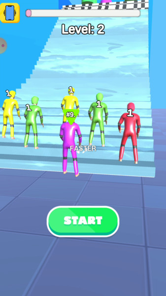 一起爬楼梯手游是一款充满魔性趣味的休闲挑战类游戏,玩家将在光滑得令人抓狂的阶梯上展开一场紧张刺激的攀爬之旅。游戏以独特的物理引擎打造出真实的打滑体验,每一次操作都需要精准把控,稍有不慎就会跌落重来,堪称手残党的噩梦与操作达人的乐园。游戏不仅能锻炼玩家的反应能力,更能磨练心性,让您在一次次失败中越挫越勇。