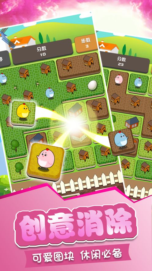 城市放置消消乐是一款将经典消除玩法与城镇建设完美结合的超人气休闲游戏。在这个充满童趣的世界里,玩家需要通过匹配相同元素进行消除,为可爱的小鸡们打造一个温馨舒适的家园。游戏操作简单直观,只需轻松点击就能完成消除,同时还能获得精美蓝图来建设你的专属城镇。数百个精心设计的关卡等你来挑战,每个关卡都充满趣味性和策略性,让你在享受消除乐趣的同时,还能体验城镇建设的成就感。