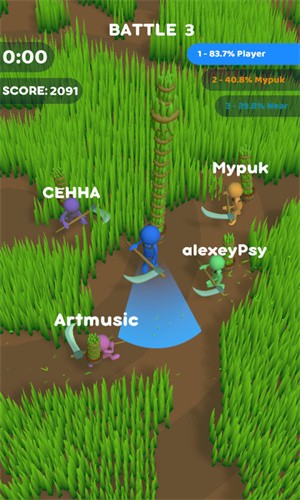 在游戏中,你可以前往商店解锁各式各样的工具装备,每件工具都拥有独特的功能。手持锋利的镰刀,你不仅要快速清理杂草,还要时刻留意其他玩家的动向,同时注意隐藏自己的位置。游戏提供单人模式和多人对战模式,在单人模式下你将与智能AI展开激烈较量,而在多人模式中则可以与真实玩家一决高下。敌人同样手持威力强大的武器,你需要灵活走位来躲避攻击。此外,商店还准备了丰富多样的道具,有些道具可以瞬间显示所有玩家的位置,合理使用这些道具将大大提升你的胜算。