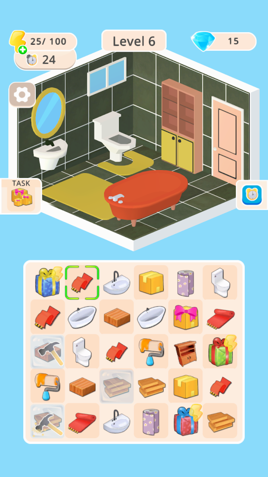 《一起搭个房》提供了循序渐进的设计挑战。从改造一个普通住宅的客厅开始,逐步解锁更多复杂的项目,最终您将有机会设计带有花园、游泳池等设施的豪华别墅。游戏的核心玩法是通过匹配图案来解锁新的装饰元素,这些元素将帮助您打造出独具特色的梦想之家。