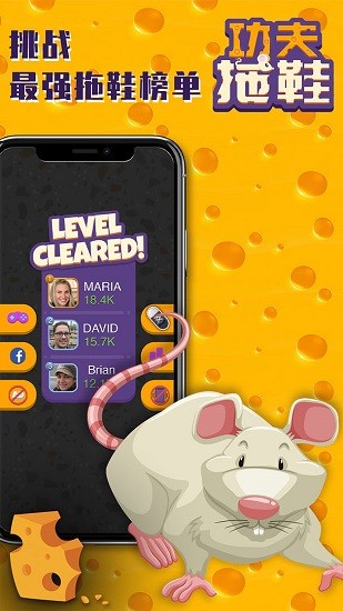 功夫拖鞋游戏最新版玩法简单易上手,首先选择你心仪的拖鞋款式,然后等待地板上出现偷吃食物的老鼠。瞄准目标后快速投掷拖鞋,看着老鼠被打得晕头转向的样子十分解压。游戏还设计了丰富的互动元素,被打中的老鼠会做出各种搞笑反应,有的会举白旗投降,有的会抱头鼠窜。随着关卡推进,老鼠的数量和移动速度都会增加,考验玩家的眼疾手快。
