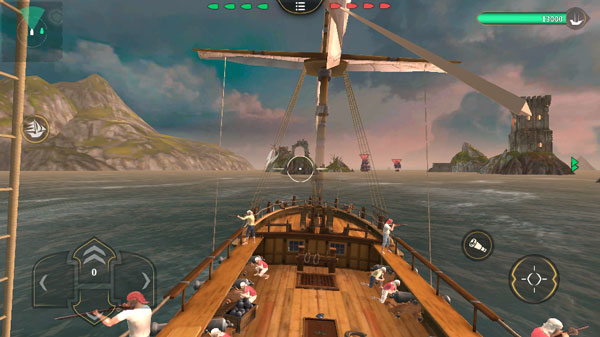 正式进入游戏后,左侧虚拟摇杆控制战舰移动方向,滑动灵敏度可自由调整;