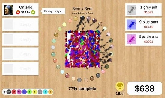 虽然市面上绘画类游戏不少,但蚂蚁艺术大亨一定能带给你前所未有的新奇体验,赶快加入这个充满创意的艺术世界吧!游戏操作简单直观,让你轻松完成各种艺术任务,展示独特的艺术效果。通过完成富有挑战性的关卡,你不仅能获得解压的快乐,还能不断提升创作能力。游戏采用单手即可完成的简易操作,没有任何复杂的控制要求,让你在短时间内就能熟练掌握,尽情享受艺术创作的乐趣。