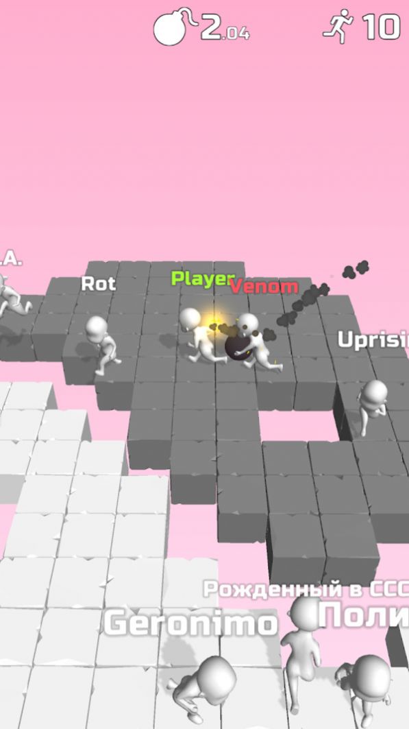 游戏采用了动态缩圈机制,随着时间推移,安全区域会不断缩小,迫使玩家进行更激烈的对抗。只有通过持续获胜,才能在这个充满挑战的竞技场中生存到最后。游戏提供了多种实用道具系统,玩家可以通过收集道具来增强自身实力,提高生存几率。炸弹系统也极具特色,不同类型的炸弹拥有不同的爆炸效果和威力,当敌人向你投掷炸弹时,必须迅速做出反应,及时逃离危险区域。