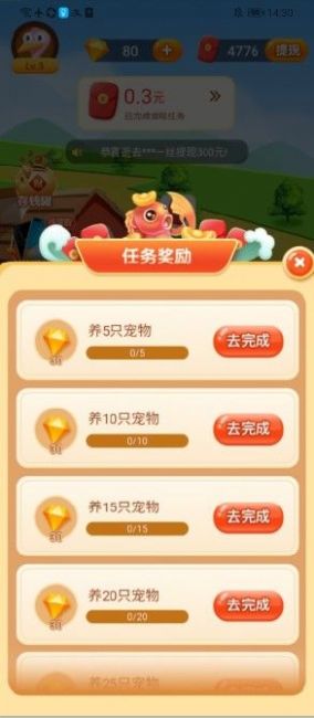 这是一款以鸵鸟养成为主的红包游戏,玩家将从孵蛋开始逐步培养属于自己的鸵鸟军团。游戏中设计了多种可爱的鸵鸟形象,通过拖拽合成相同鸵鸟即可升级,等级越高获得的红包奖励就越丰厚。丰富多样的主题场景让游戏体验更加生动有趣,鸵鸟们呆萌可爱的造型更是让人爱不释手。简洁明快的卡通画风带来舒适的视觉享受,让玩家能够完全沉浸在游戏世界中。值得一提的是,游戏支持离线收益功能,即使不在线也能持续获得收益,真正做到轻松赚钱两不误。