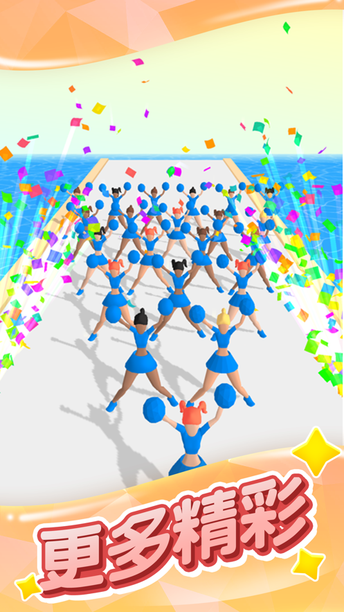 在《啦啦队快跑》中,你将化身为一位技艺精湛的啦啦队队长,带领你的团队参加一场激动人心的挑战赛。无论是跳跃、翻转还是快速躲避障碍,对你来说都轻而易举。游戏的核心玩法是通过跑酷的方式穿越各种复杂的地形,同时收集沿途的啦啦队成员,壮大你的队伍。然而,挑战并非一帆风顺——当你遇到障碍时,团队成员可能会减少,但真正的啦啦队队长绝不会被这些困难吓倒。通过灵活的操作和策略性的队形调整,你将带领团队突破重重关卡,最终赢得胜利。