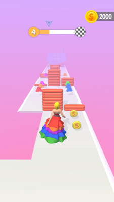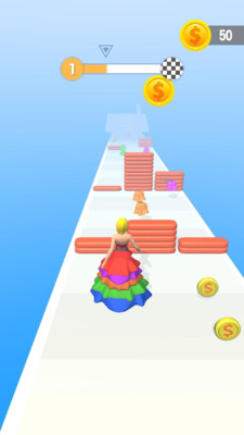 游戏采用渐进式难度设计,随着关卡推进,障碍数量和道路复杂度都会逐步提升,但合理的难度曲线让玩家能够逐步适应。核心玩法简单易懂,主要任务是收集道具钻石并躲避障碍,但丰富的关卡设计保证了游戏的可玩性。最具特色的是终点处的台阶设计,最终裙子的华丽程度将直接影响你能登上多少级台阶,这个创意十足的设定让游戏更具挑战性和成就感。