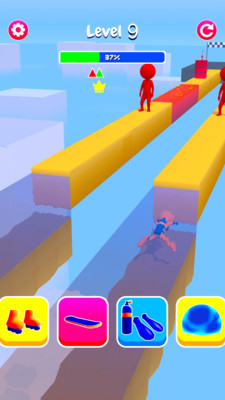 在超能人变形记手游中,你将化身为一名拥有超能力的跑酷达人,利用能量护盾冲破重重障碍,粉碎阻挡你的敌人。游戏提供了多样化的移动方式:你可以踩着气垫板飞跃滚烫的熔岩,穿上潜水服在深海中遨游,或是借助喷气背包直冲云霄。在这里,没有你无法跨越的高墙,也没有遥不可及的终点,只要掌握好节奏,胜利就在眼前!